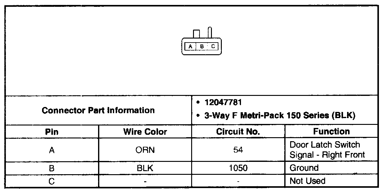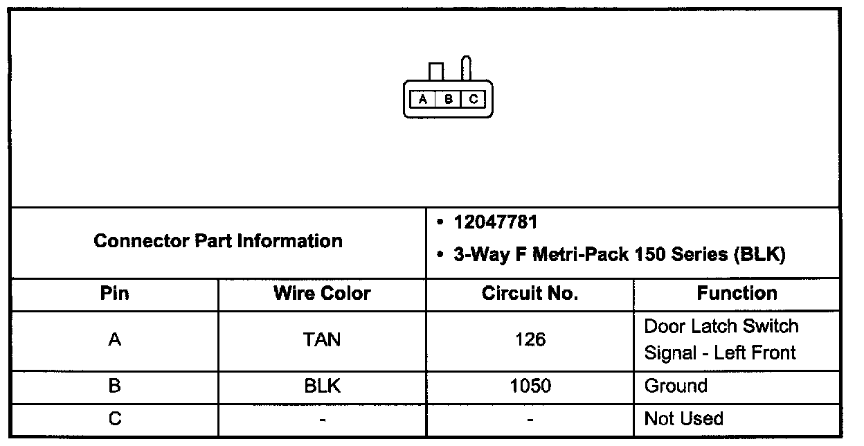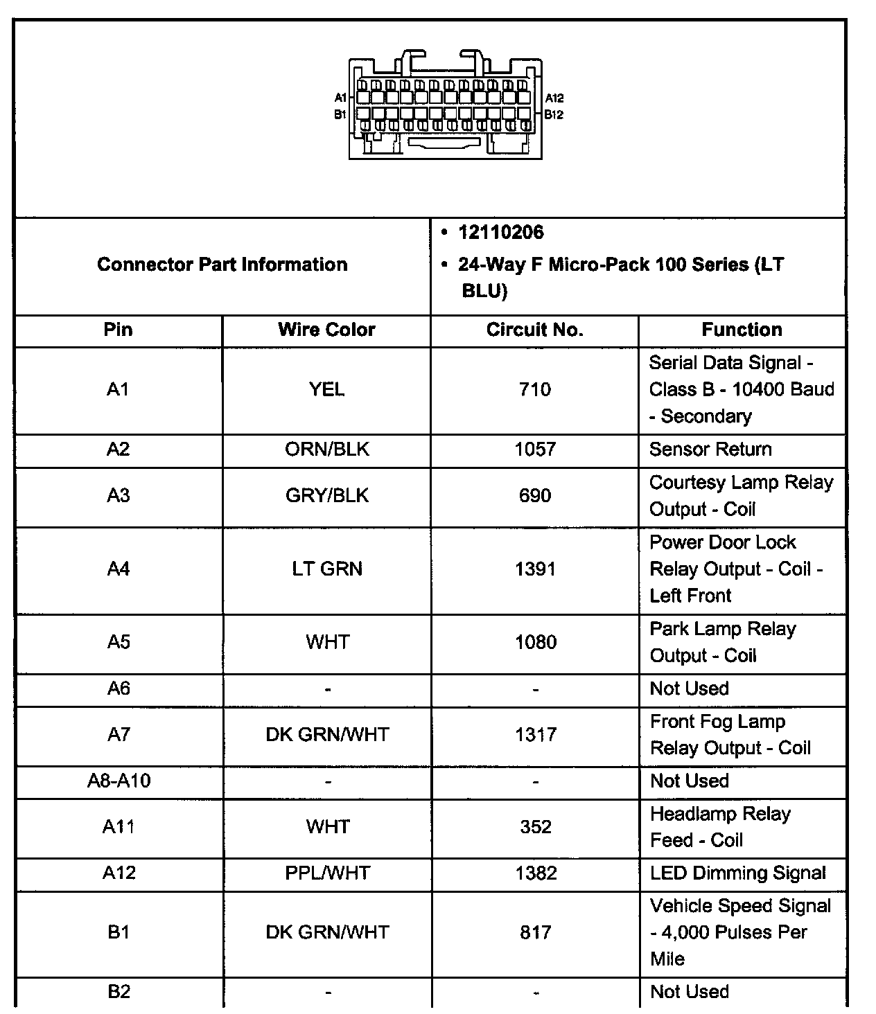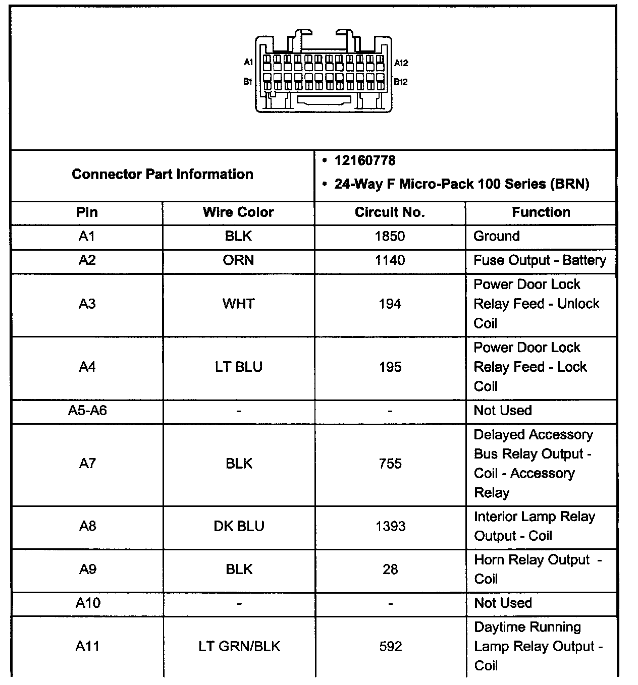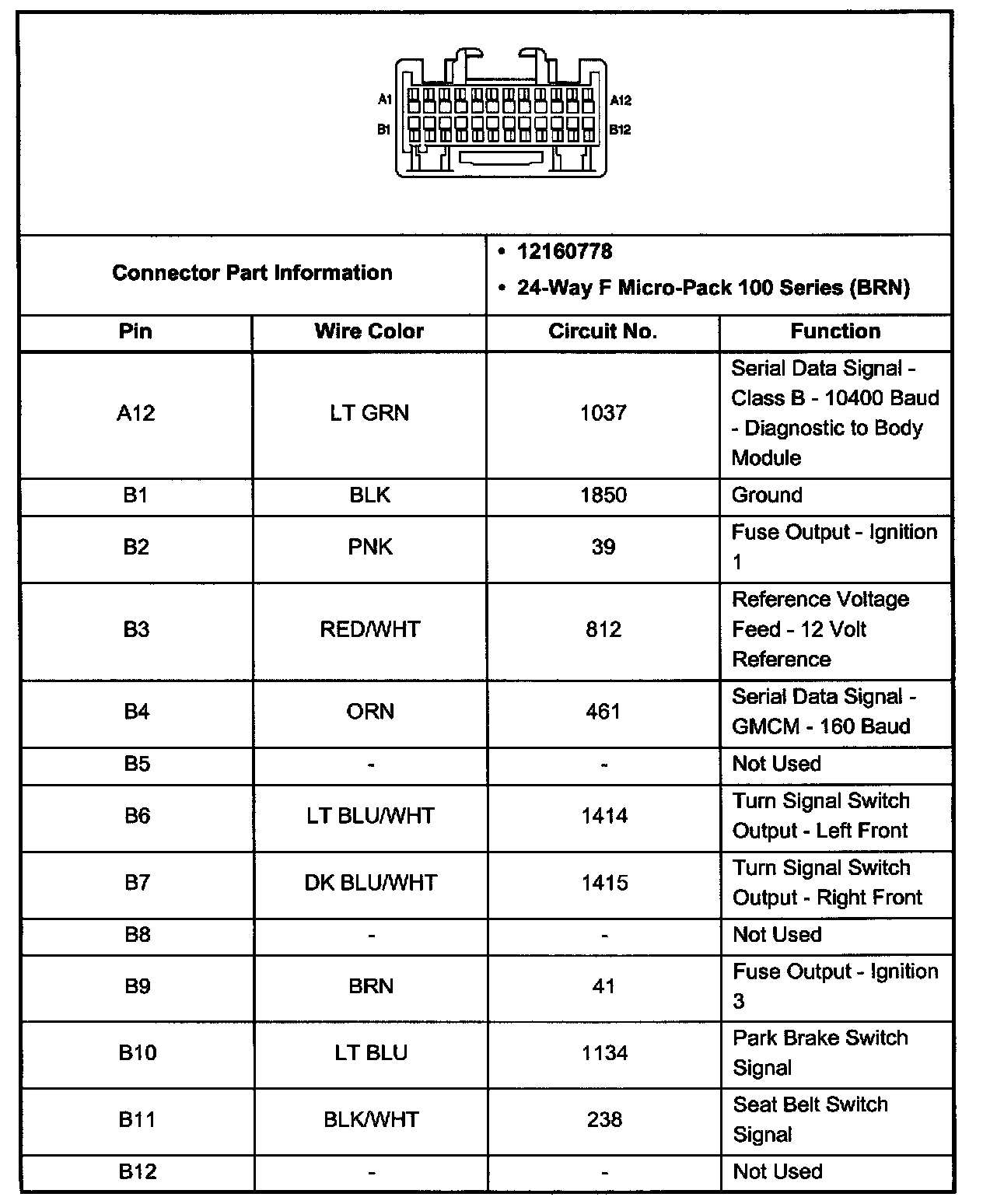 Body Control Module Connector C1 (Pin A12 - B12):