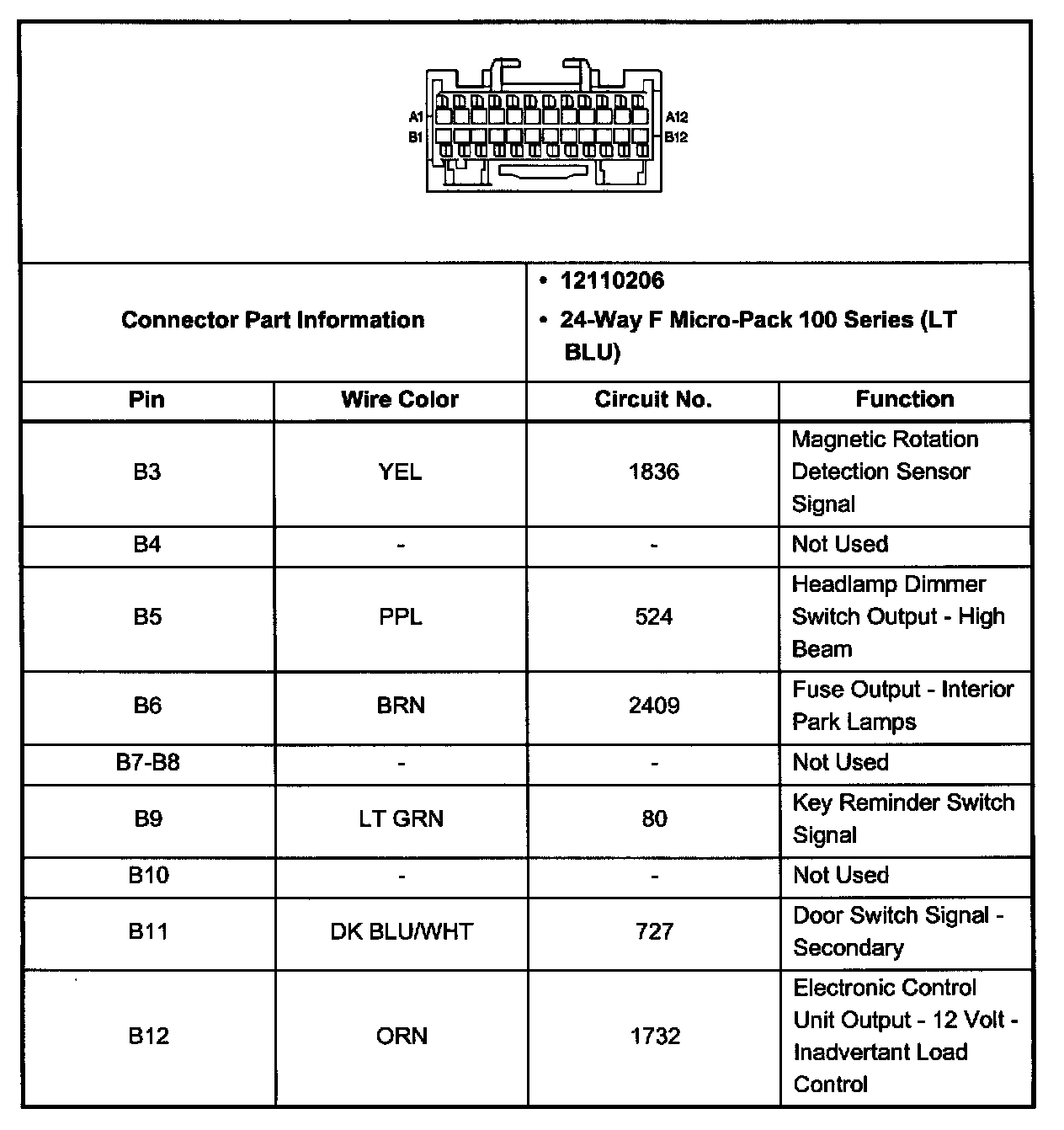 Body Control Module Connector C2 (Pin B3 - B12):