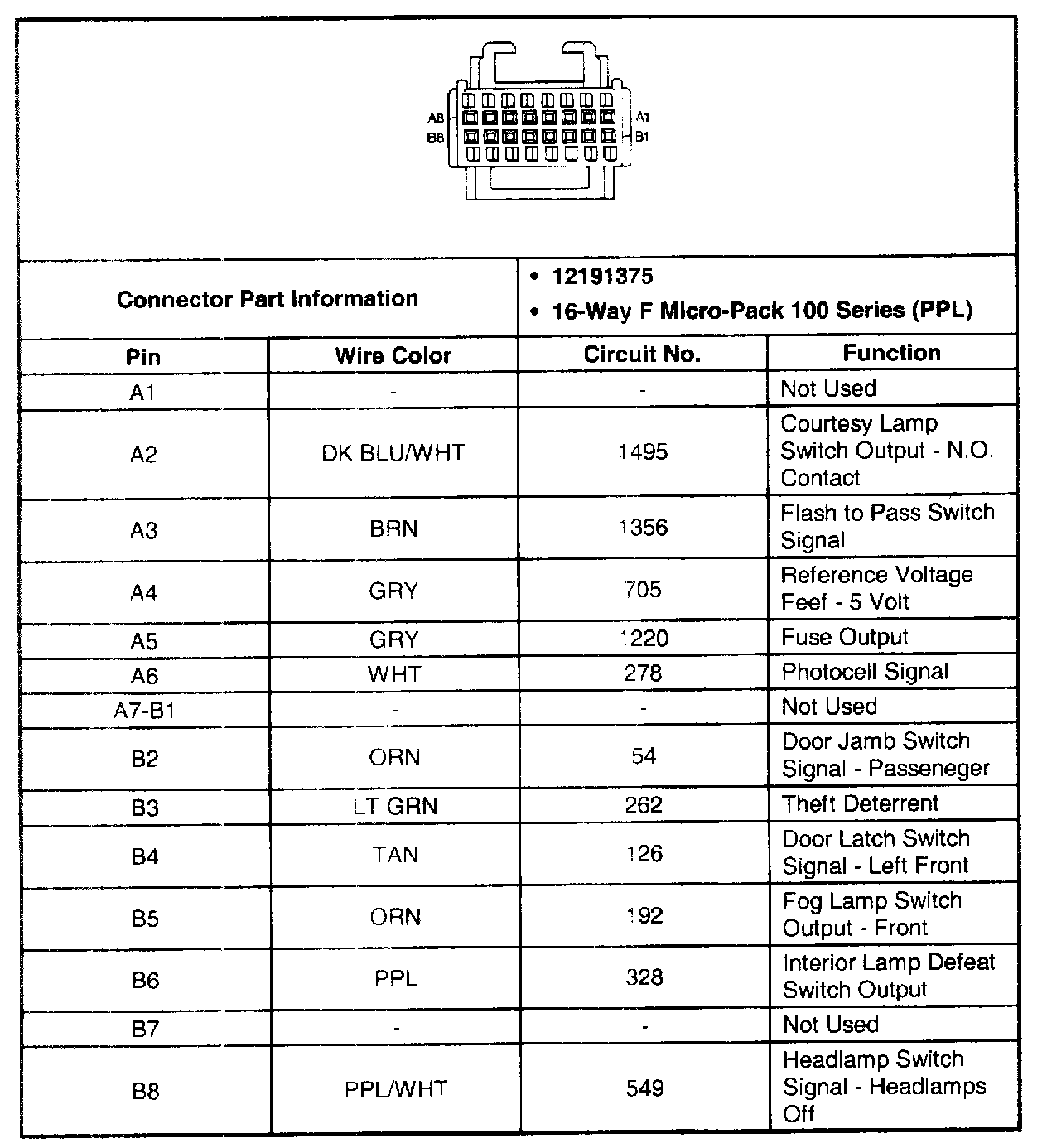 Body Control Module Connector C2 (Pin A1 - B2):