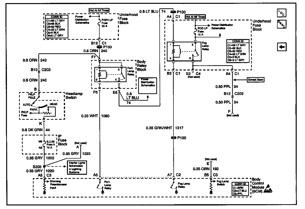 PARK LP, FOG LP Fuses, and Park Lamp and Fog Lamp Relays: