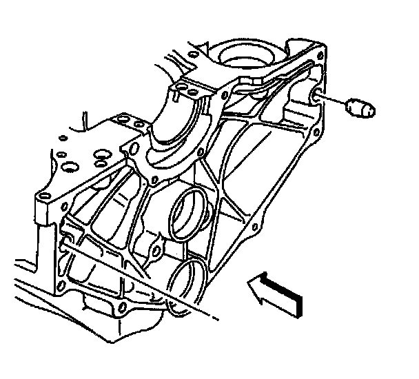 6. Remove the engine block left rear oil gallery plug.