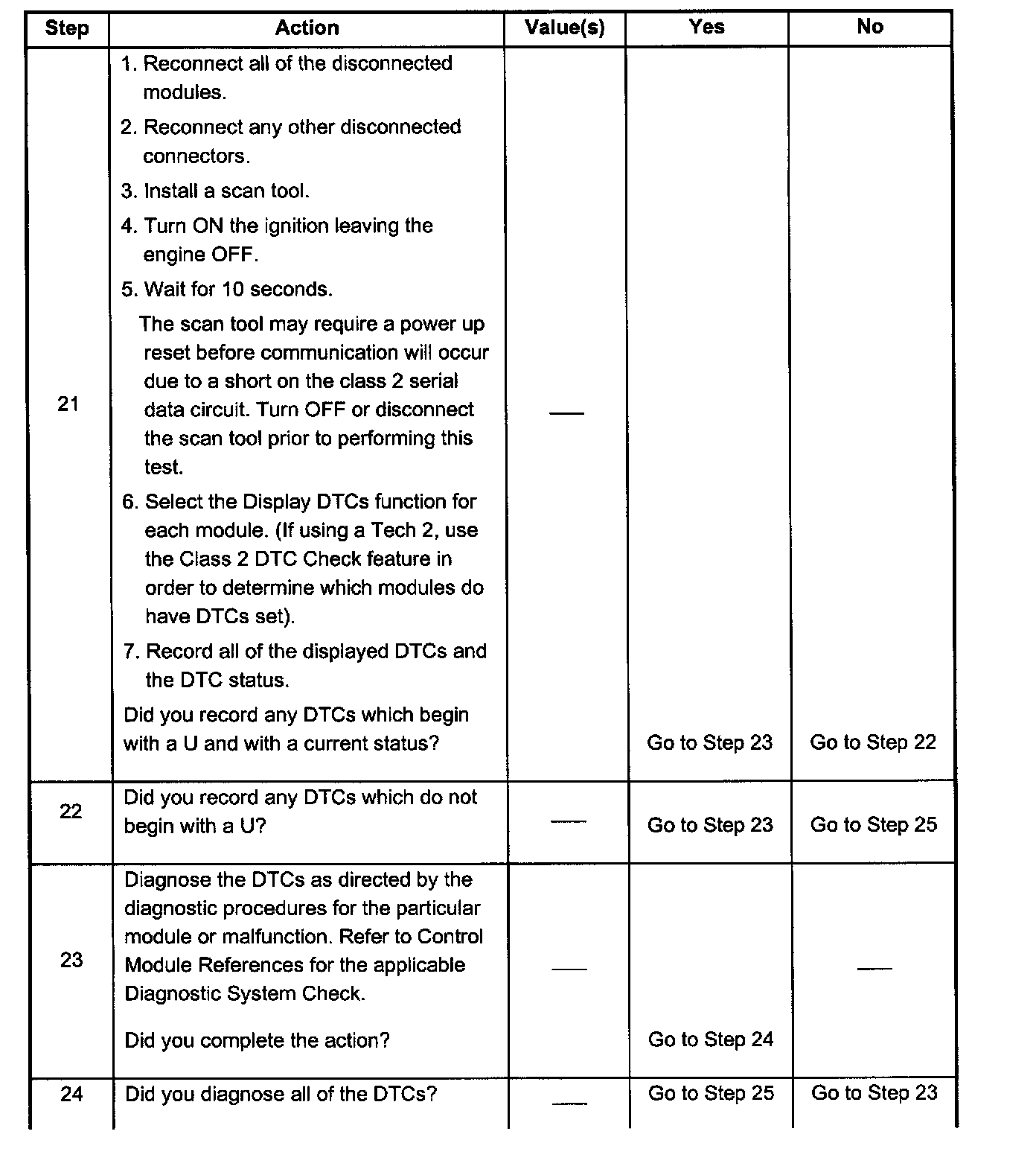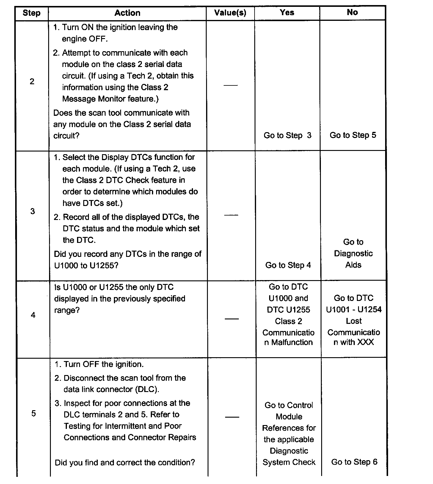 - When the class 2 serial data circuit is shorted to ground, DTC U1300 will be set. Refer to DTC U1300 Class 2 Data Link Low.