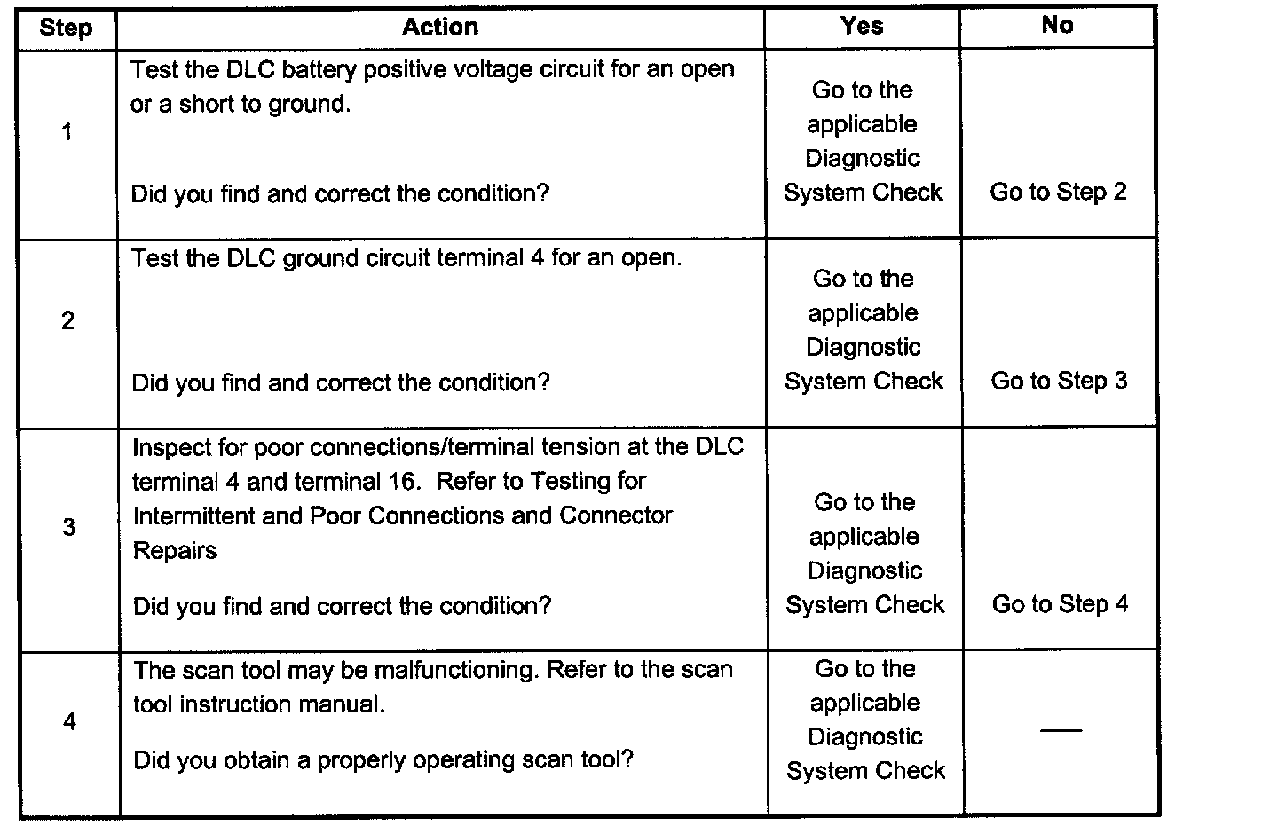 4. The DLC battery positive voltage and ground circuits are functioning properly. The malfunction must be due to the scan tool.