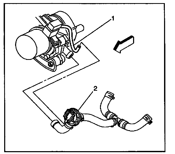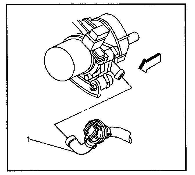 8. Disconnect the shut-off valve hose (1) from the AIR pump by releasing the spring clamp.