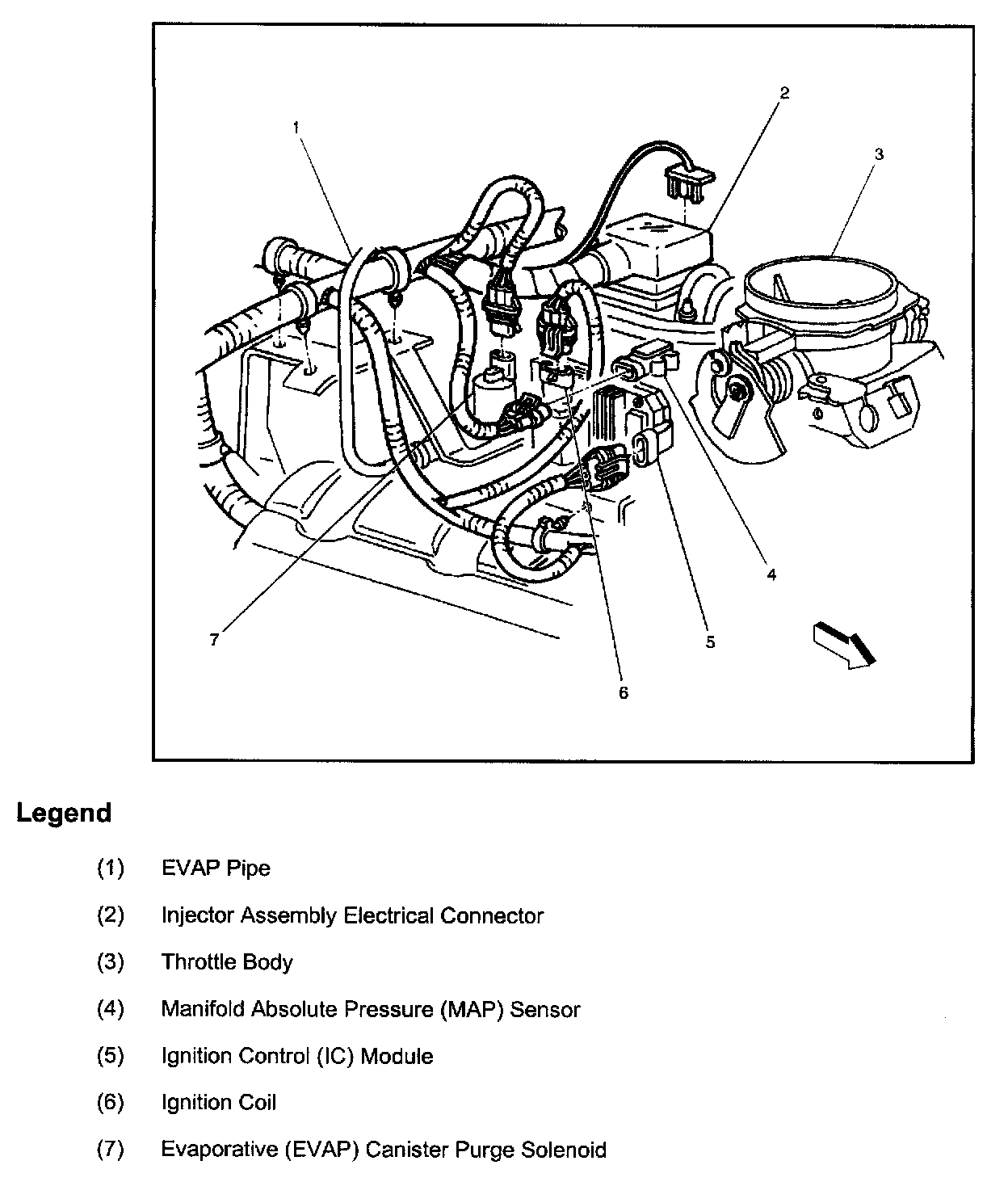 Ignition Coil, IC Module, MAP, Throttle Body And Evaporator (EVAP) Canister Purge Solenoid: