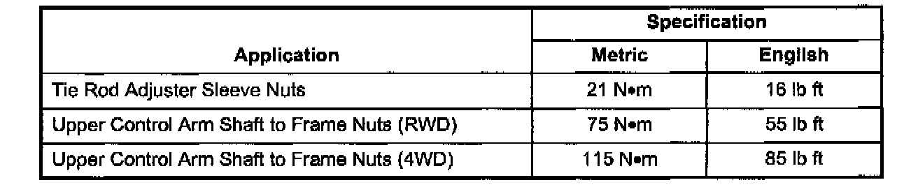 Tightening Specifications