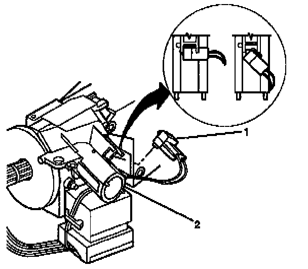 7. Slide the ignition and key alarm switch assembly (2) out of the lock module assembly (1) by releasing the tabs.