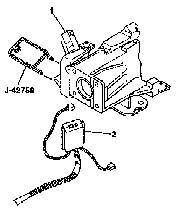 5. Pull the key alarm connector (1) out of the lock module assembly (2).