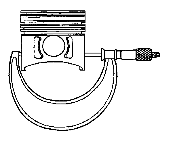 4. With a micrometer or caliper at a right angle to the piston pin bore, measure the piston 11 mm (0.433 inch) from the bottom of the skirt.