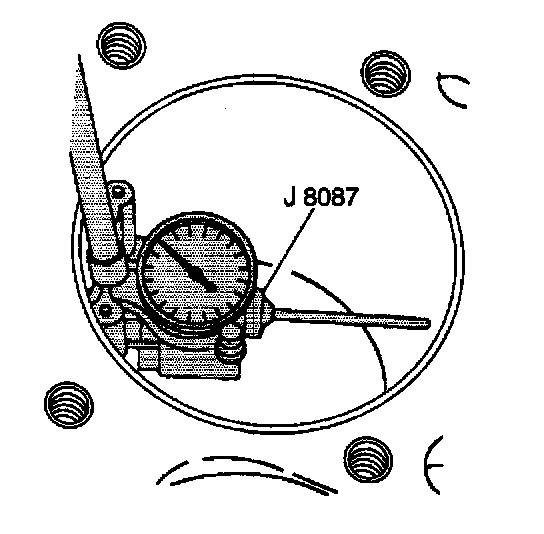 2. Use the J8087 in order to measure the cylinder bore diameter. Measure at a point 64 mm (2.5 inch) from the top of the cylinder bore and 90 degrees to the crankshaft centerline.
