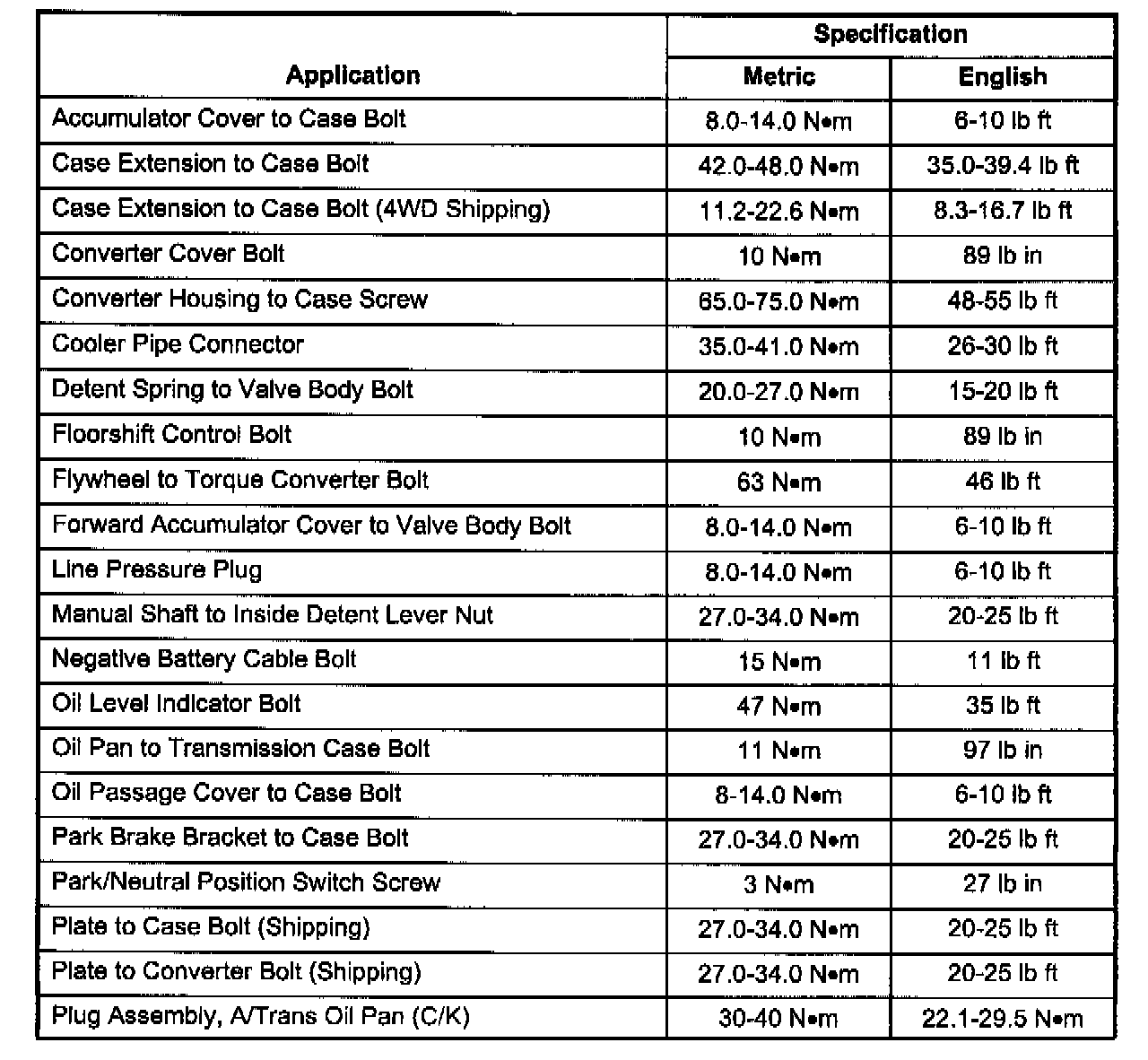 Tightening Specifications