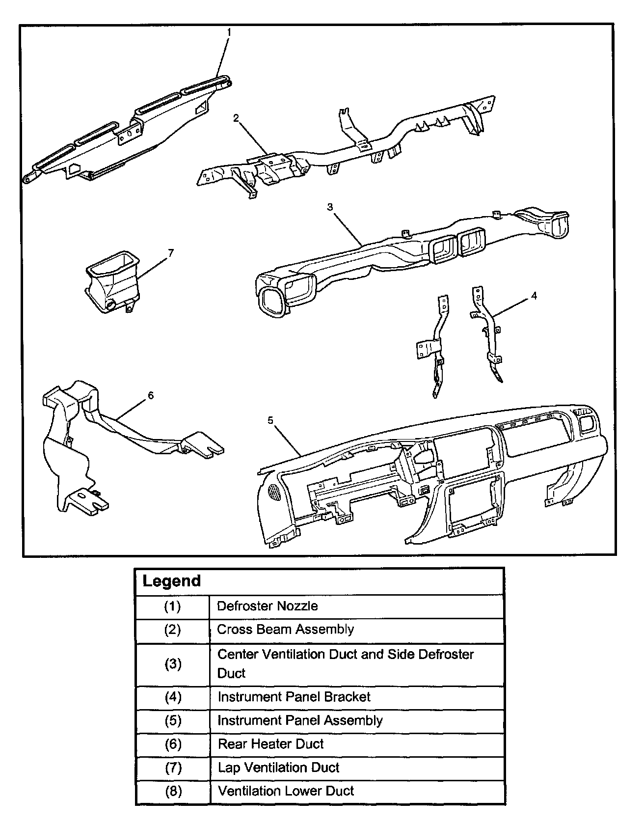 Rear Heater Duct, Defroster Nozzle and Ventilation DuctRear Heater Duct, Defroster Nozzle, Ventilation Duct And Associated Parts: