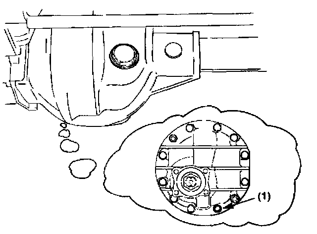 2. Drain the front axle oil by loosening the drain plug (1).