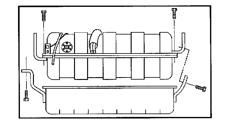 9. Remove four bolts (two in front and two in rear) holding fuel tank to the frame.