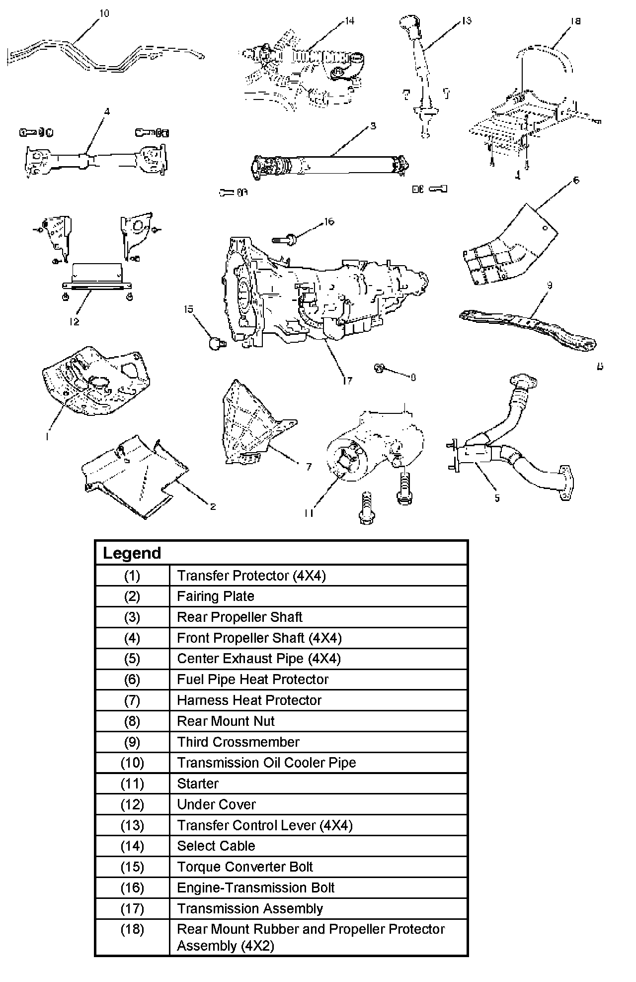Note: Before removing transmission and transfer assembly from vehicle, change the transfer mode to 2WD using push button on dash panel. (V6, 4x4)
