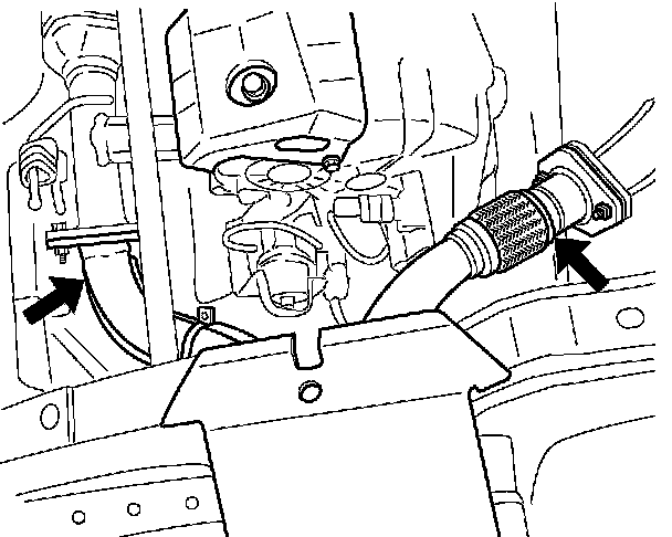 - Install exhaust pipe bracket to converter housing and exhaust pipe (HEC).