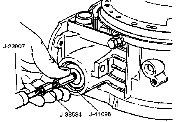 2. Install the J-41096 cover remover and J-38584 adapter to center hole of cover.