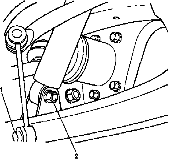 11. Remove the lower bolt and nut (2) of the shock absorber.