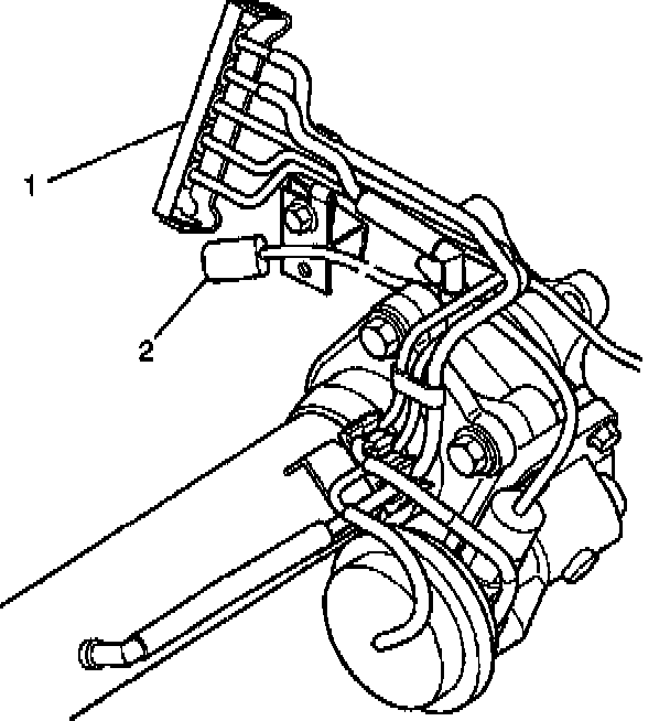 13. Disconnect the hose of the shift on the fly, at the hose clip portion (1).
