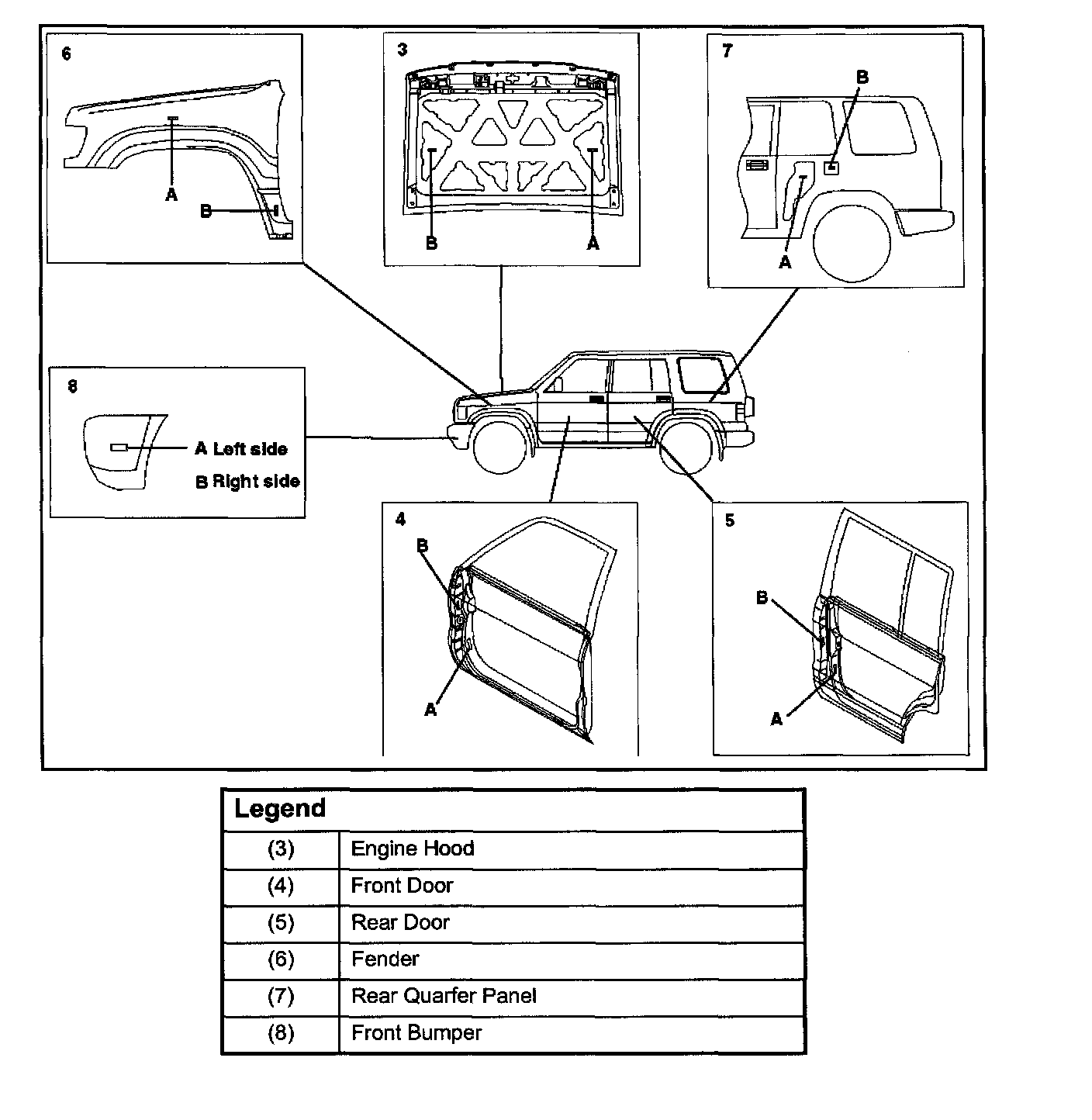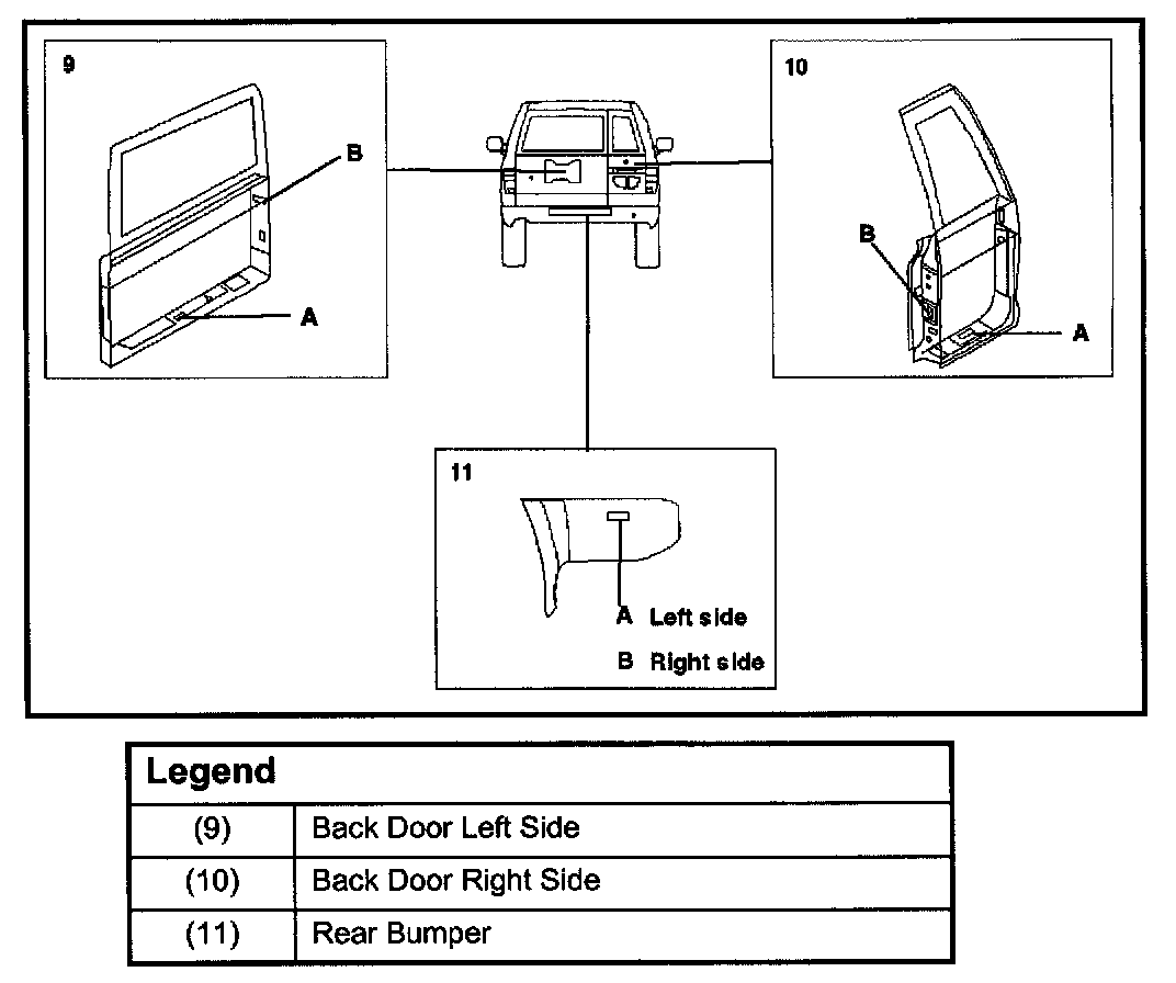 Do not peel off the masking tape until completion of paint work when replacing these parts, as the tape is affixed on the label attached to service parts for body of the anti-theft component.