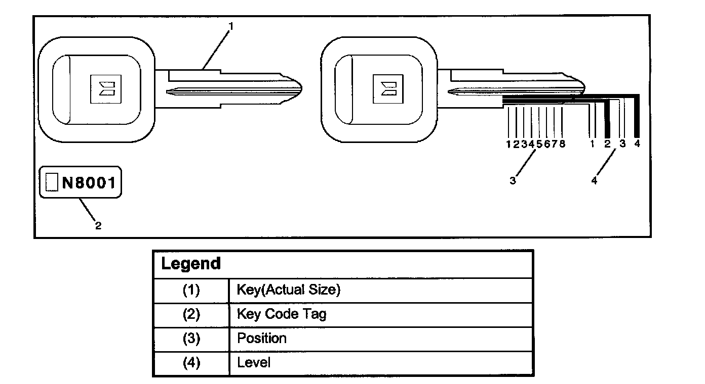 If the original key is available, the key code cutting combination can be determined by laying the key on the diagram shown in the figure.