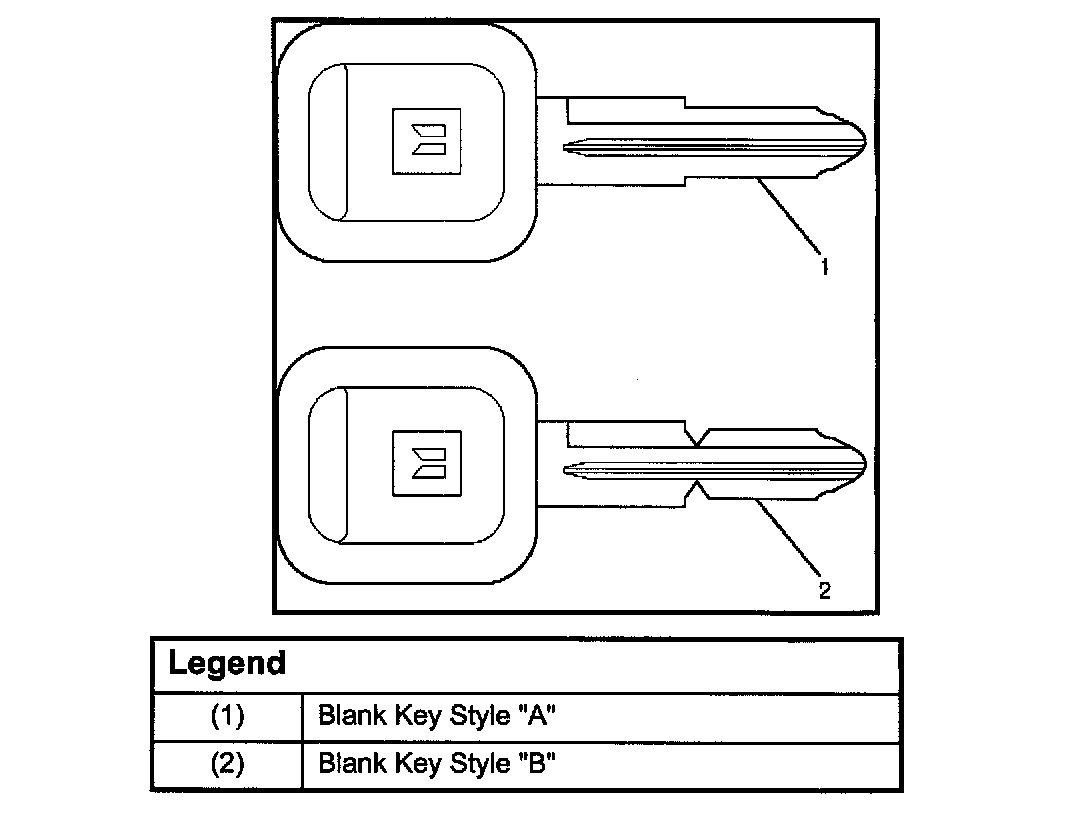 The keys come in styles A or B depending on the key code cutting combination. When the first position in the combination is a 1, 2 or 3, Style A is used. When the first position is a 4, Style B (factory pre-cut key) is used.