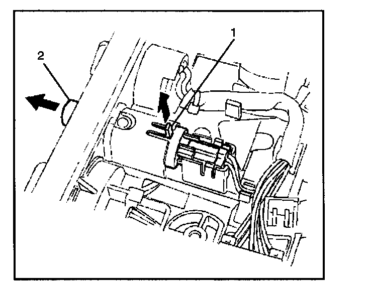 3. Lift up the catch portion (1) of the switch and remove the air conditioning switch (2) while pushing it toward the outside.