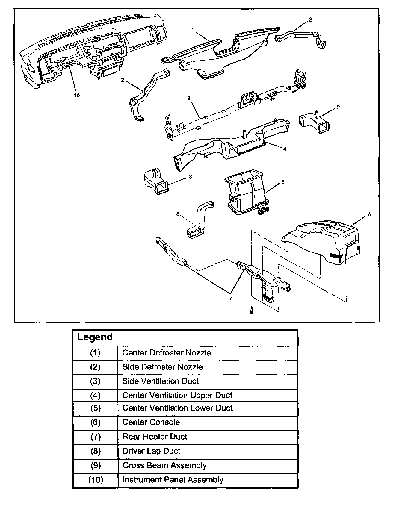 Rear Heater Duct, Defroster Nozzle and Ventilation DuctRear Heater Duct, Defroster Nozzle, Ventilation Duct And Associated Parts: