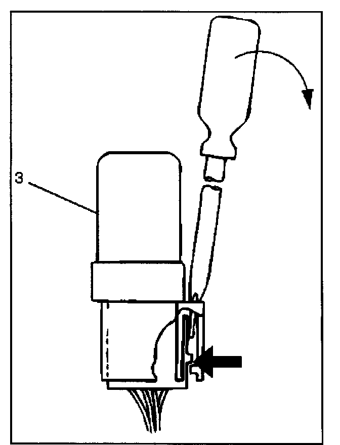 3. Insert a small screwdriver into the catch slot on the forward side of the fuel pump relay.