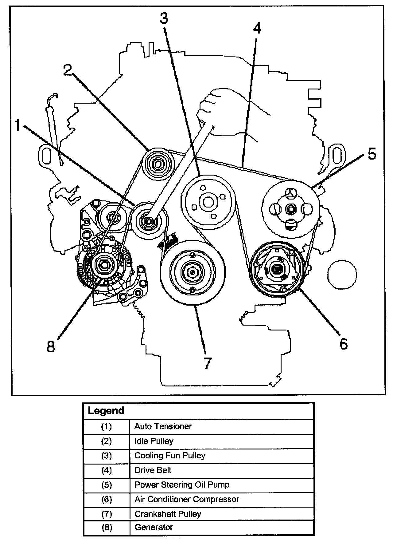 - Move drive belt tensioner to loose side using wrench then remove drive belt.