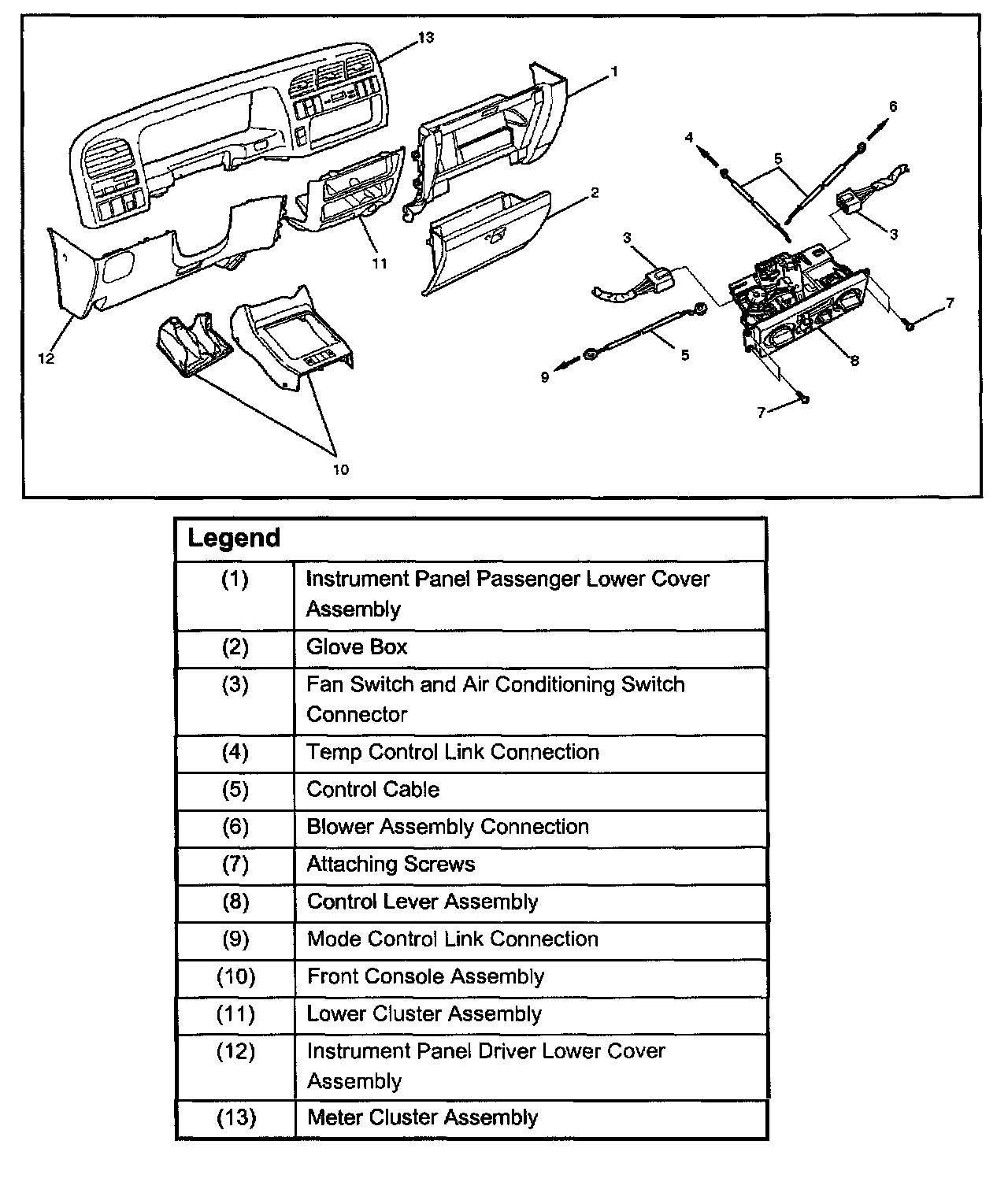 7. Remove meter cluster assembly. Refer to Instrument Panel, Gauges and Warning Indicators.
