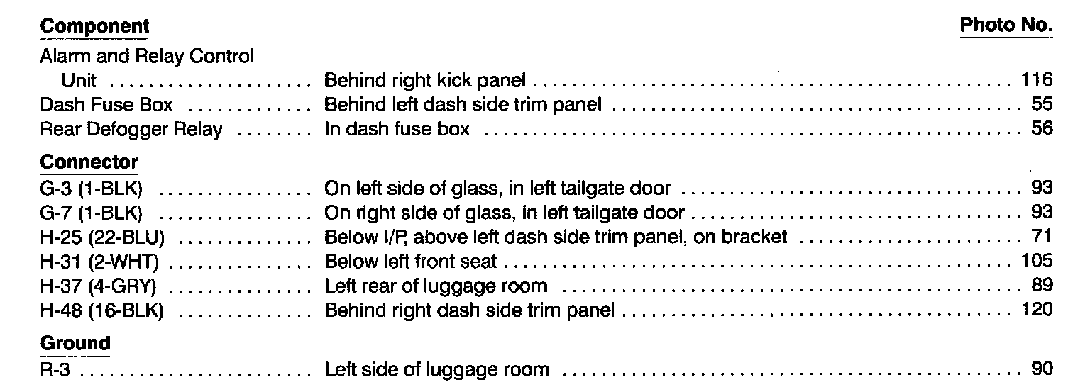 Rear Defogger Index: