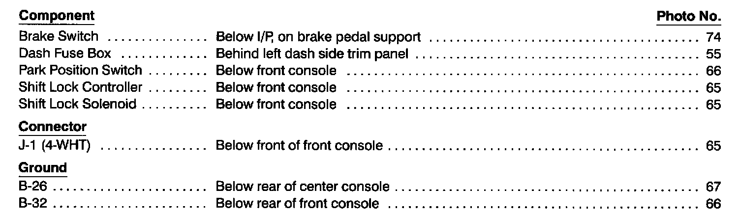 Shift Interlock System Index: