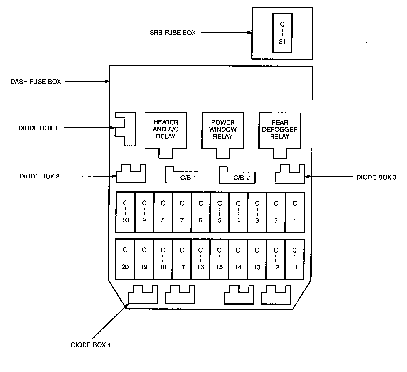 Dash and SRS Fuse Boxes: