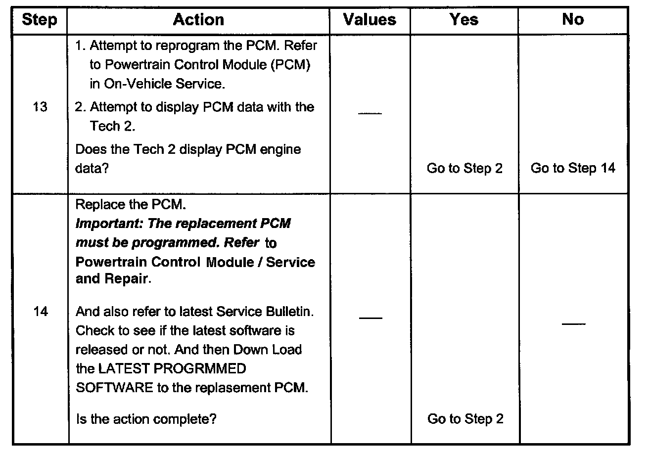 13. A Tech 2 parameter which is not within the typical range may help to isolate the area which is causing the problem.