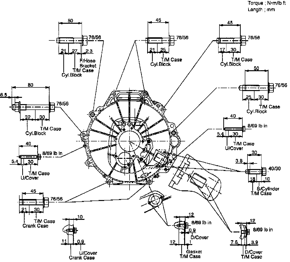 Exh. pipe flange bolt: 43 Nm (32 ft. lbs.)