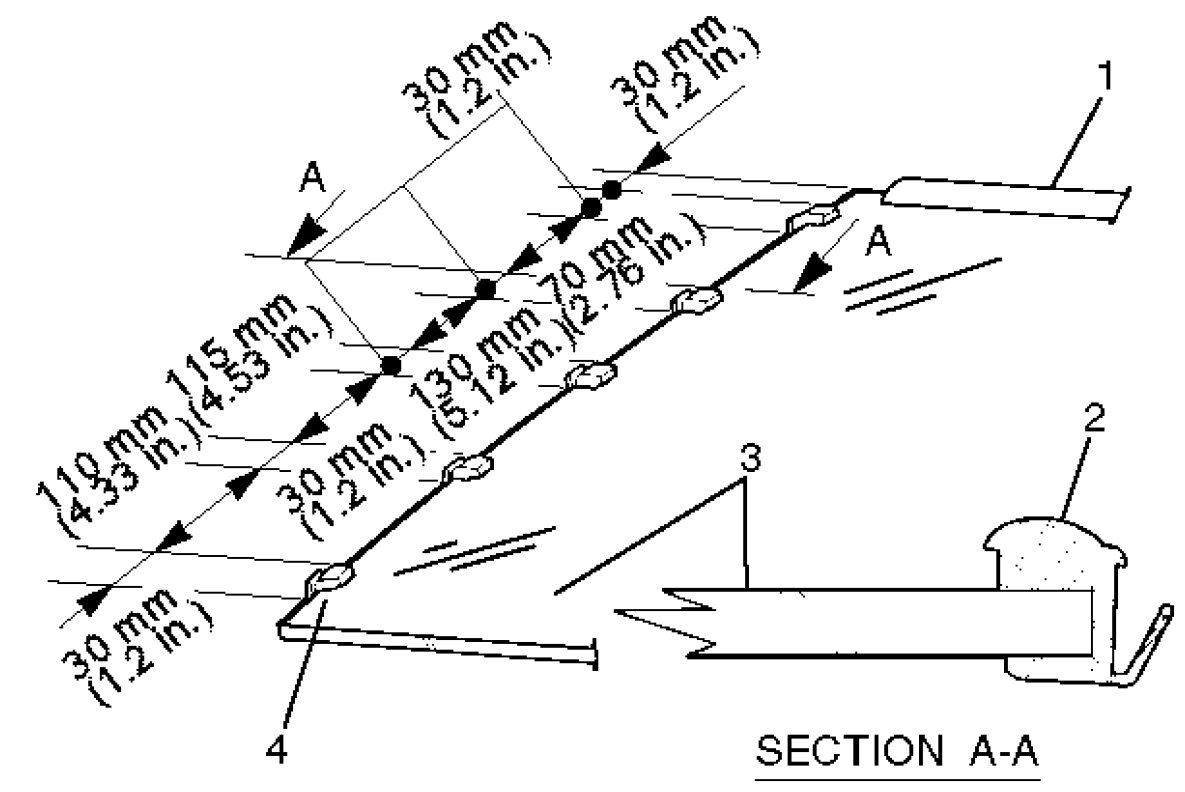 - Insert the windshield (5) side moulding (1) into the moulding clip (2).