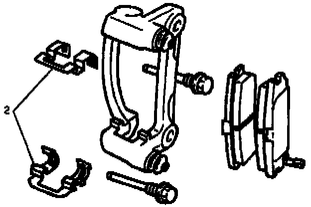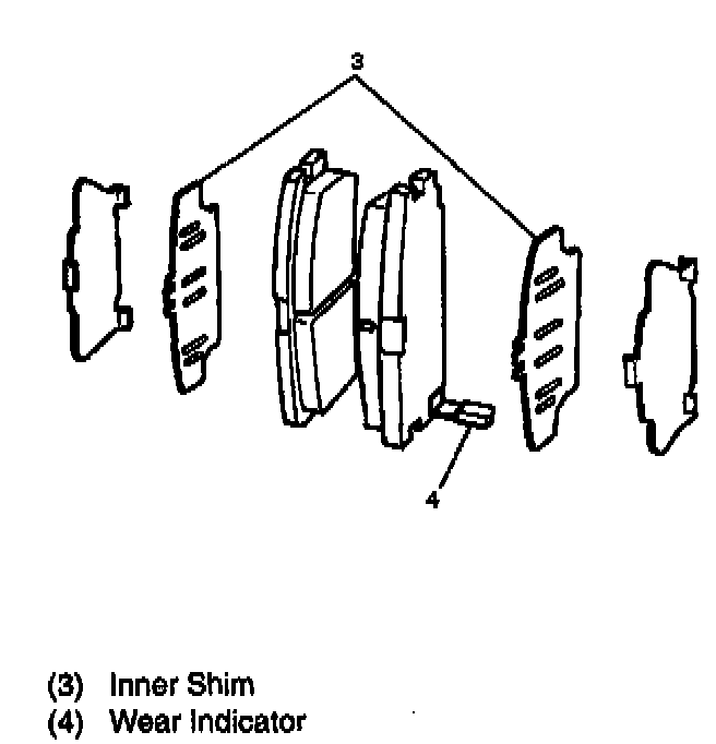 NOTE: If a squealing noise occurs from the rear brake while driving, check the pad wear indicator plate. If the indicator plate contacts the rotor, the disc pad assembly should be replaced.
