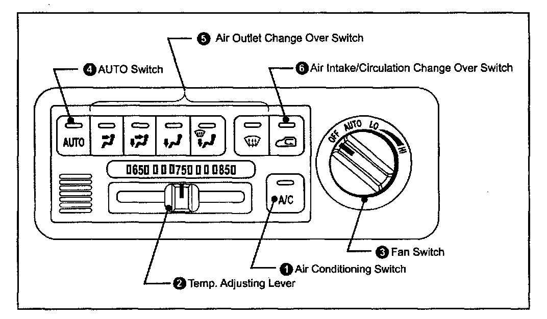 For Model Year 2000, the Trooper has an Automatic Air Conditioning System that provides both heating and cooling for optimum vehicle comfort in all weather conditions. This Automatic Air Conditioning System incorporates a Control Panel as illustrated.