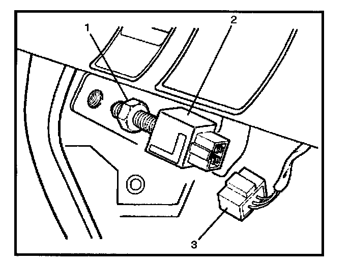 2. Disconnect the connector (3), loosen the lock nut (1) and then remove the stoplight switch (2) by turning it.