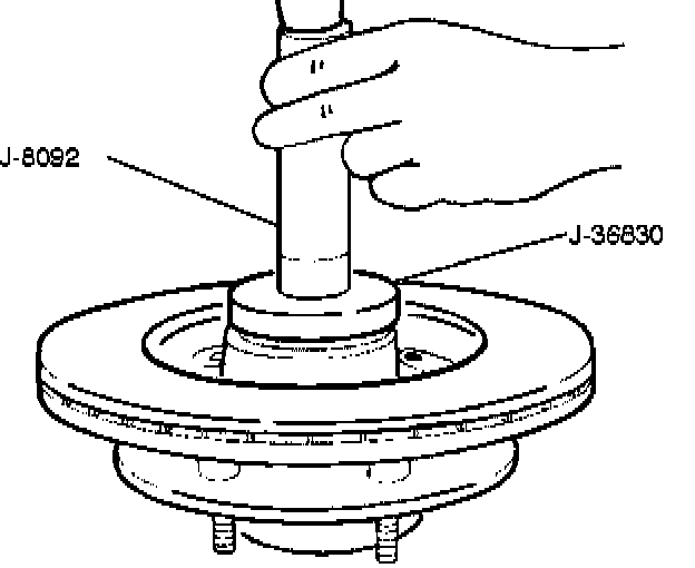 Install the outer race by driving it into the hub by using installer J-36828 and grip J-8092.