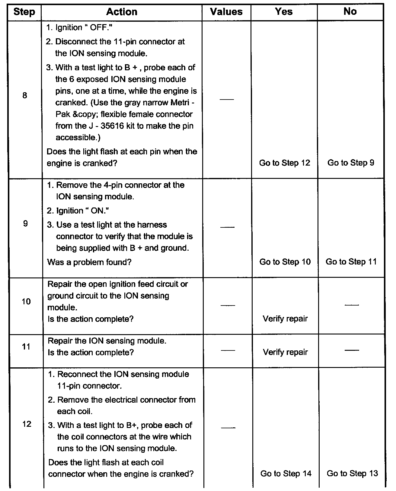 - Connect test light J 39021 - 95 to the connector. Do any of the light constantly illuminate or fail to blink when the engine is cranked? If so, repair the short or open circuit, or replace the PCM if indicated.