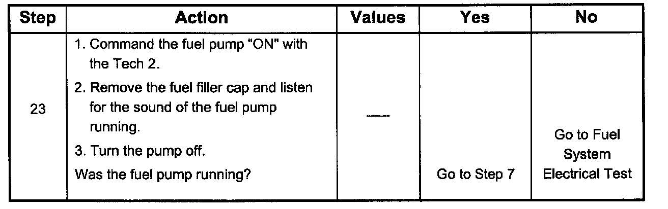 4. Fuel pressure that drops off during acceleration, cruise, or hard cornering may case a lean condition. A lean condition can cause a loss of power, surging, or misfire. A lean condition can be diagnosed using a Tech 2. If an extremely lean condition occurs, the oxygen sensor(s) will stop toggling. The oxygen sensor output voltage(s) will drop below 500 mV. Also, the fuel injector pulse width will increase.