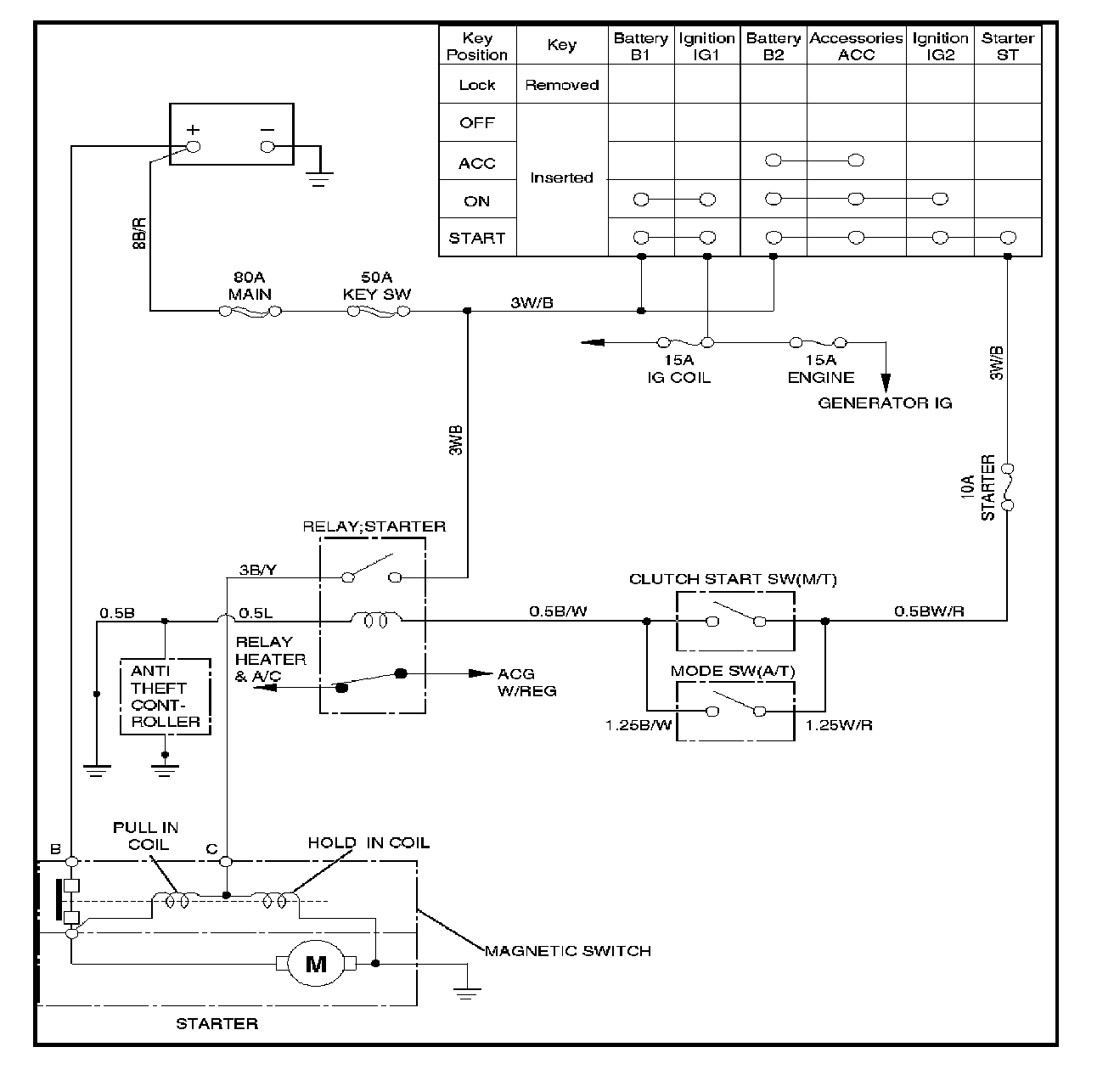The cranking system consists of a battery, starter, starter switch, starter relay, etc. These main components are connected.