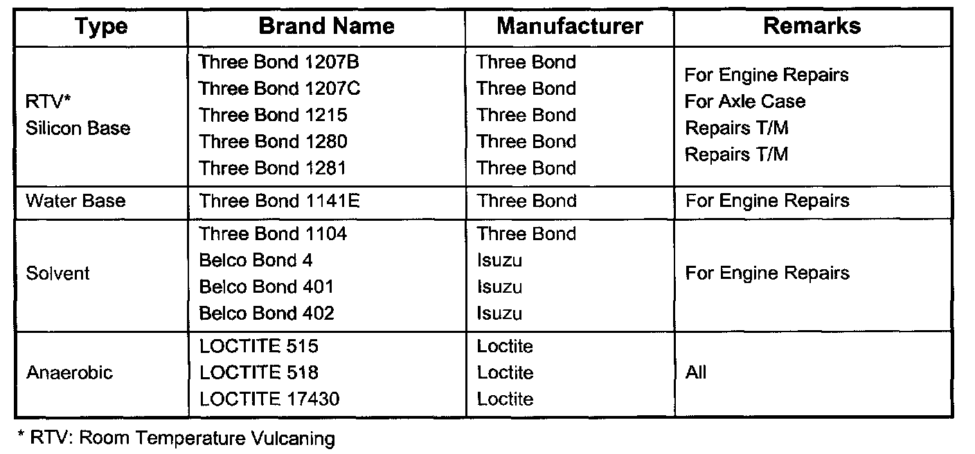 1. It is very important that the liquid gaskets listed above or their exact equivalent be used on the vehicle.