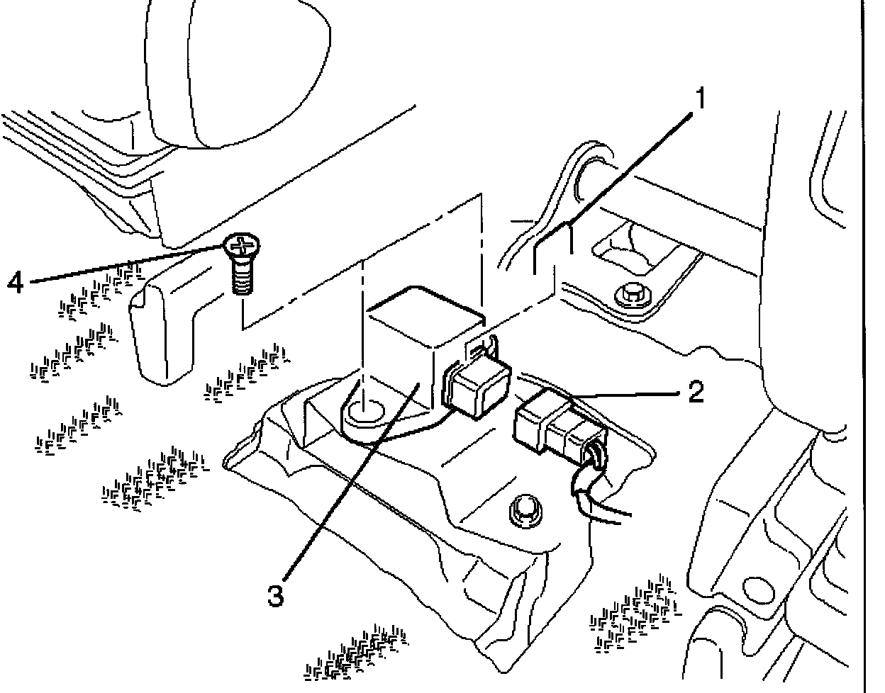 2. Remove clip (1) from G-sensor connector (2), then disconnect connector.