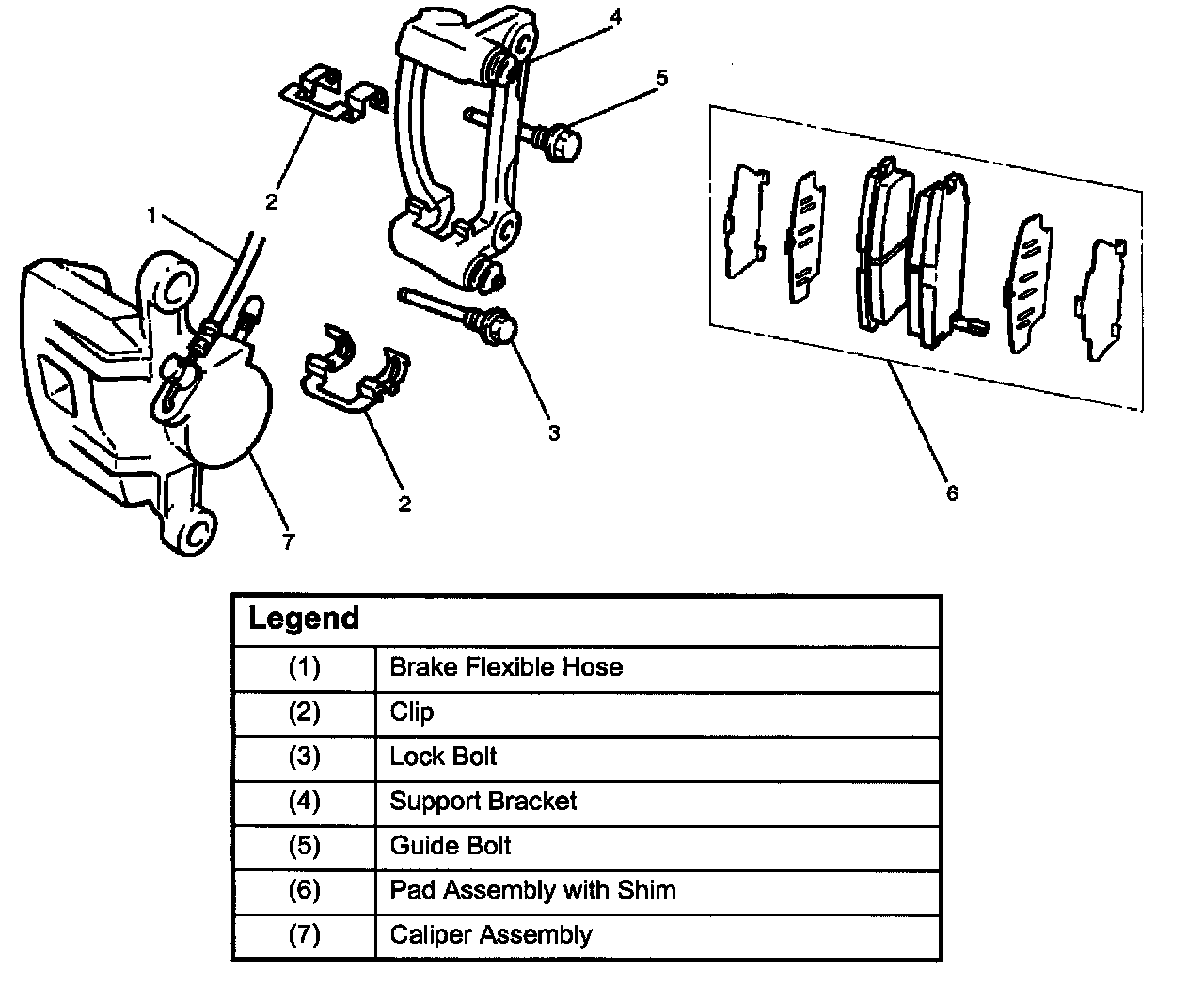 Rear Disc Brake Caliper Assembly and Associated Parts