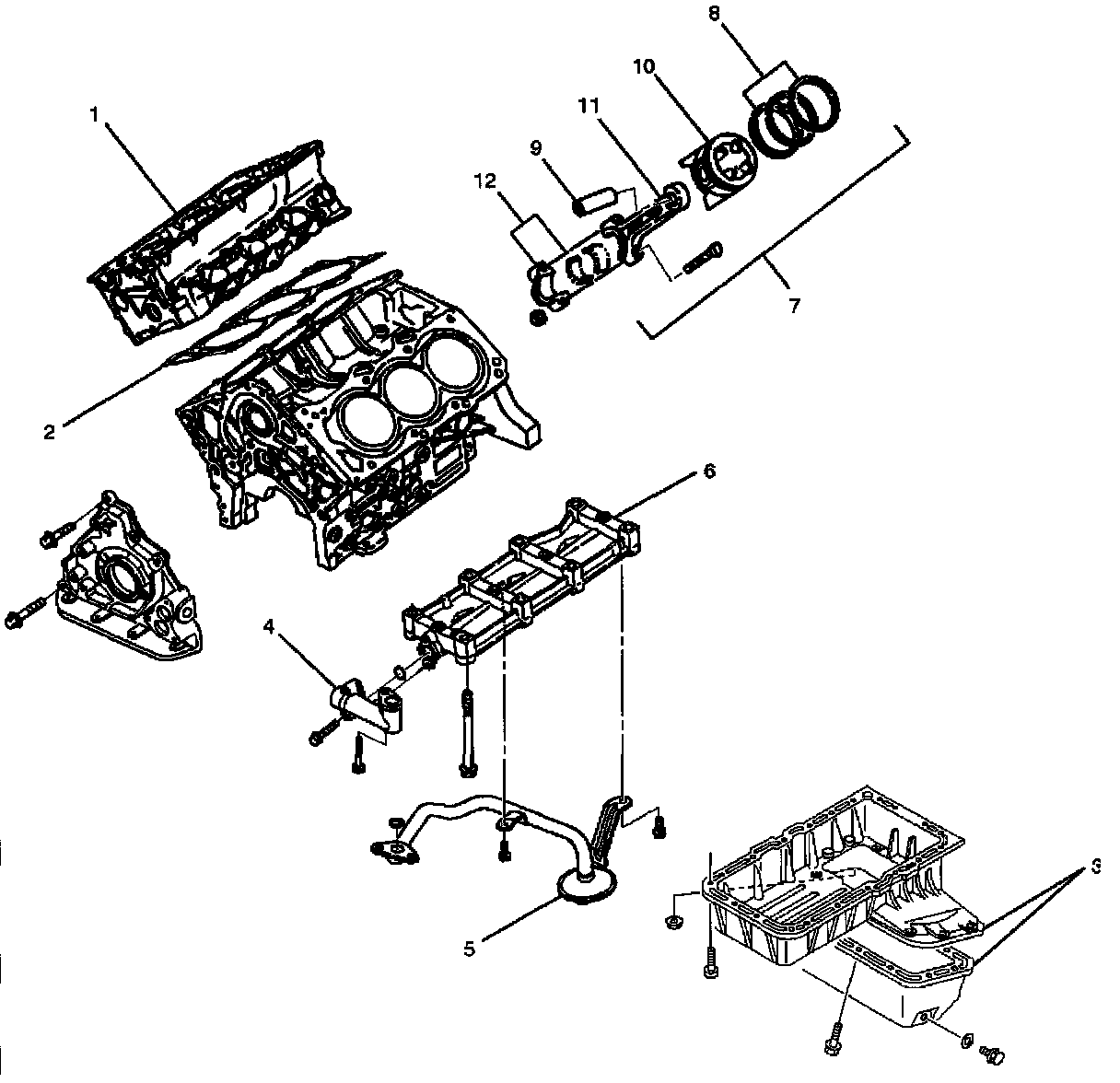 7. Oil strainer and O-ring.