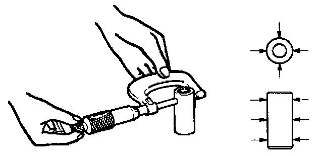 2. Measure the inside diameter of the connecting rod small end. If the fitting interference between the small end and pin does not conform to the specified value, the connecting rod must be replaced.