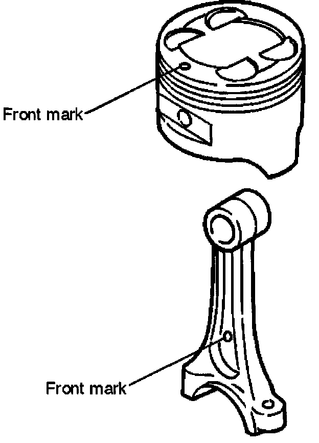 ^ Attach the piston to the connecting rod with the piston front mark and the connecting rod front mark on the same side.